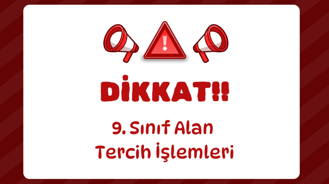 9. Sınıf Alan Tercih İşlemleri için Son Gün!9. Sınıf Öğrencilerimizin Dikkatine! Alan tercih işlemleri bugün...